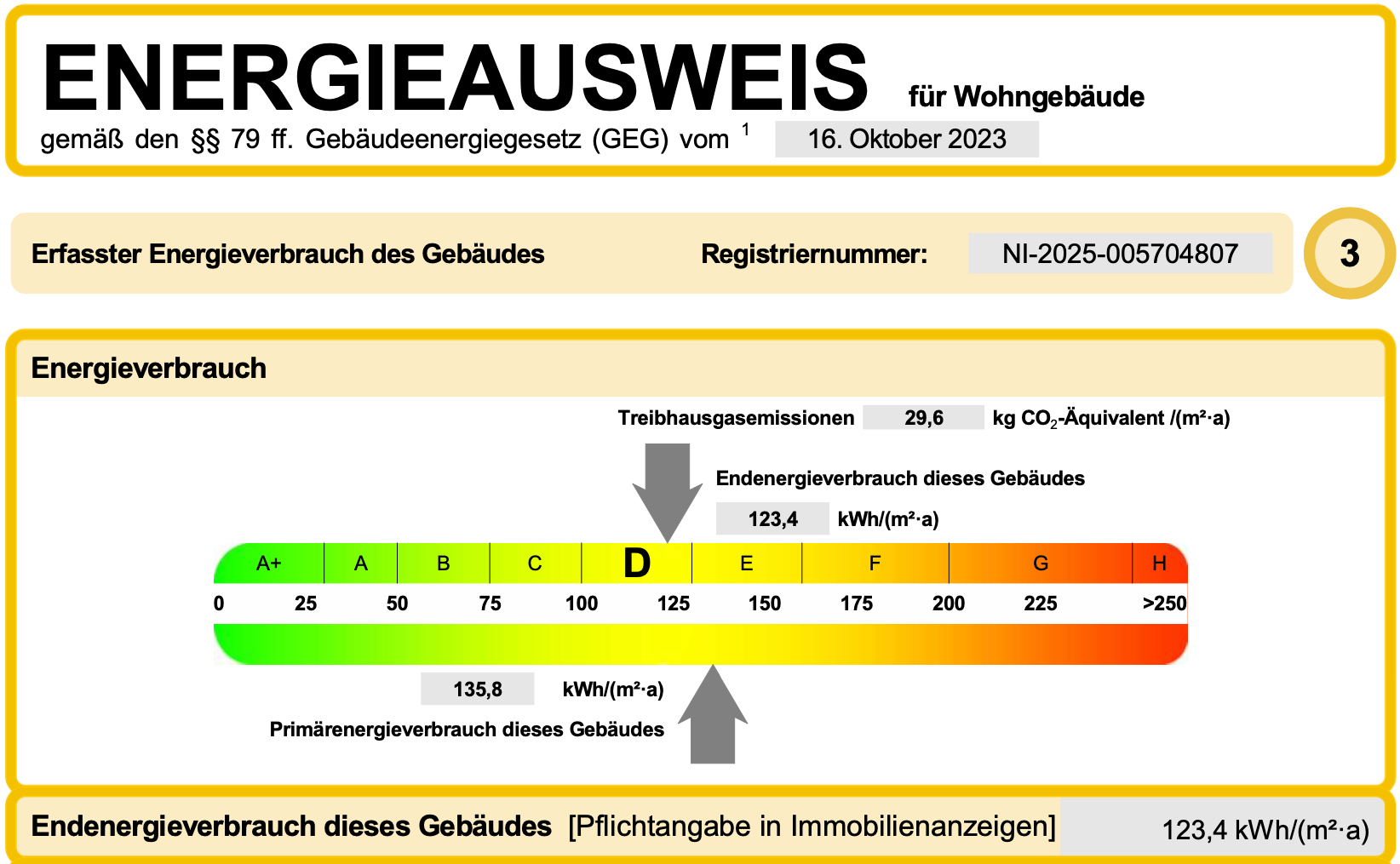 - Energieverbrauchskennwert 123,4 kWh/(m²*a)