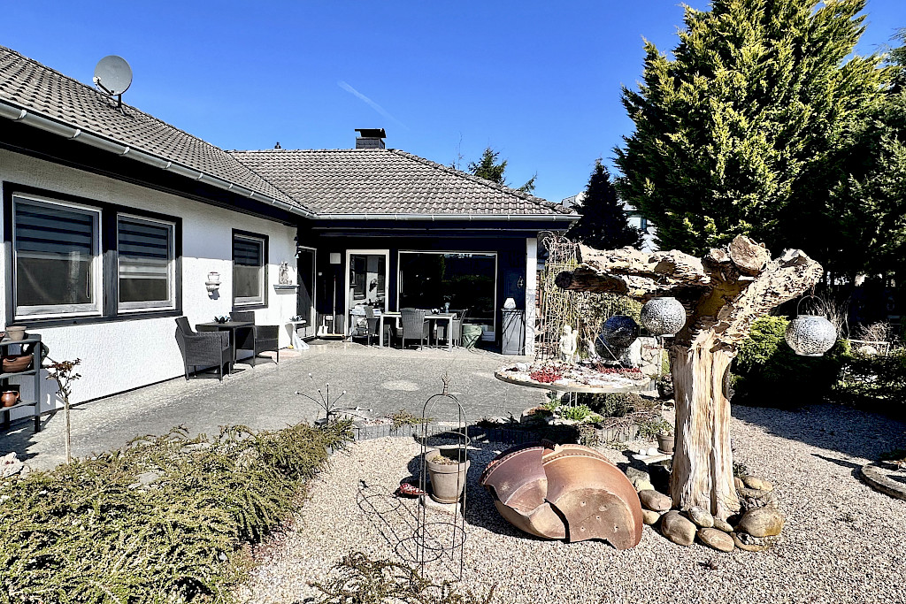 - teilüberdachter Terrassenbereich in sonniger Süd- Ausrichtung mit elektrischer Markise ausgestattet