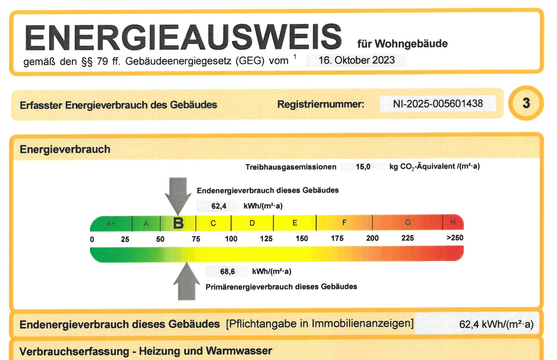 - Energieverbrauchskennwert 62,5 kWh/(m²*a)