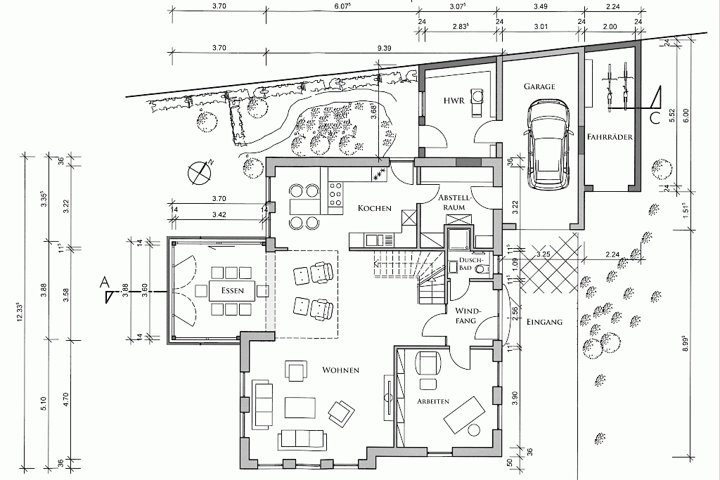 - Dachüberstände sowie Eingangsbereich des Hauses mit integrierten Strahlern ausgestattet (auch über Bewegungsmelder schaltbar)