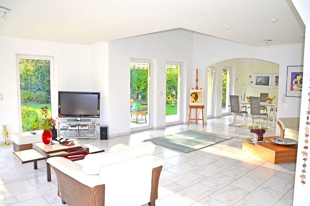 In begehrter Wohnlage in einem kleinen Wohngebiet im Ortsteil Elmendorf unseres Kur- und Ferienortes Bad Zwischenahns steht dieses moderne Komfort- Wohnhaus zum Verkauf an. Die außergewöhnliche Immobilie bietet alle Vorzüge für ein vorbildliches begehrenswertes Wohnen in naturverbundener Wohnlage in nächster Nähe zum Zwischenahner Meer. Das Domizil beeindruckt vorallem durch die idealen Lichtverhältnisse sowie der imposanten Deckengestaltungen und vermittelt somit ein behagliches Raumgefühl.
