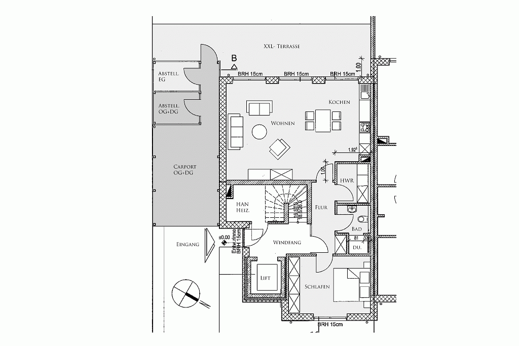 - Zugang vom Wohnbereich zum rückwärtigen, geschützt liegenden Gartenbereich