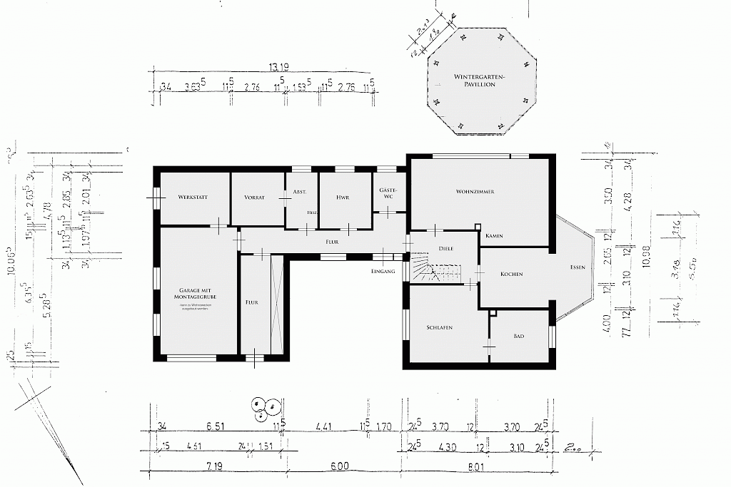 - integrierte Garage im Anbau des Hauses mit elektrischem HÖRMANN- Tor und großer Montagegrube; bei Bedarf kann dieser Bereich zu Wohnzwecken umgenutzt werden