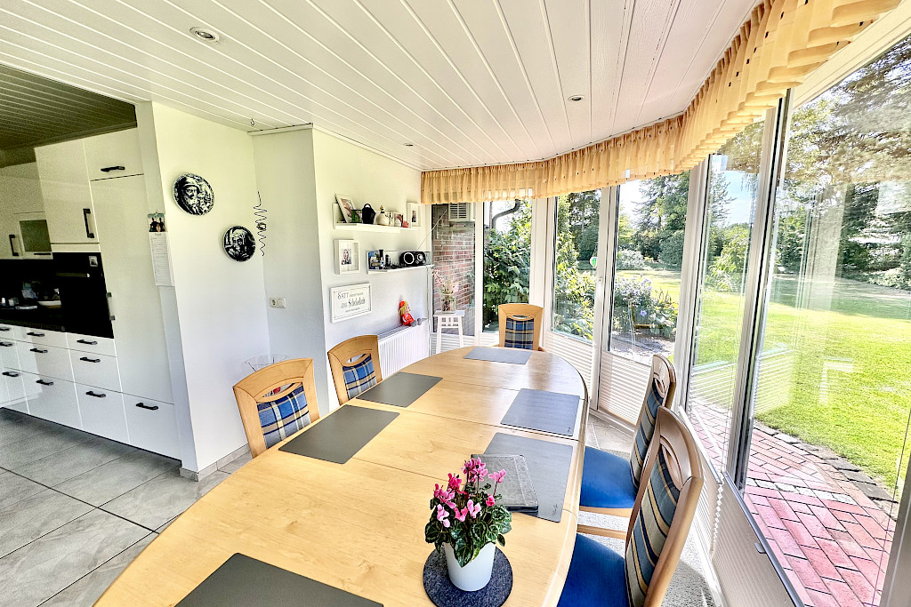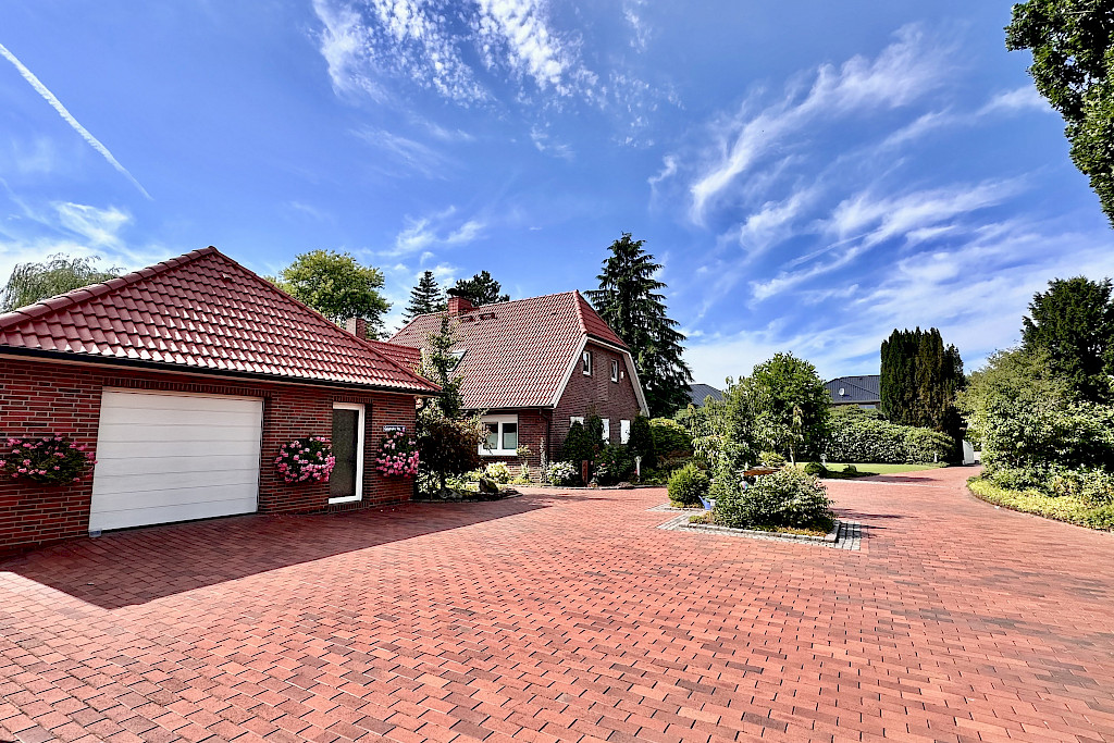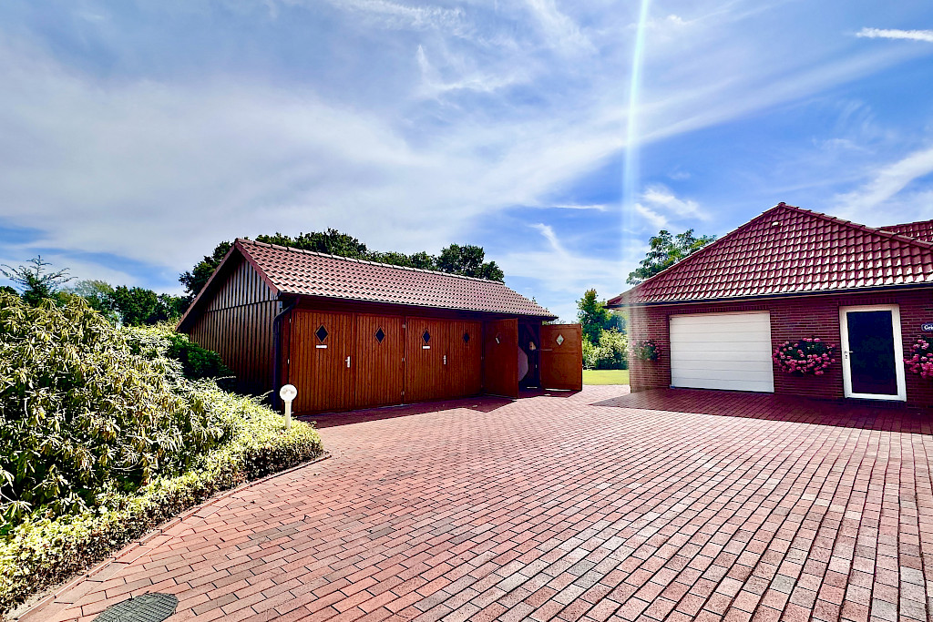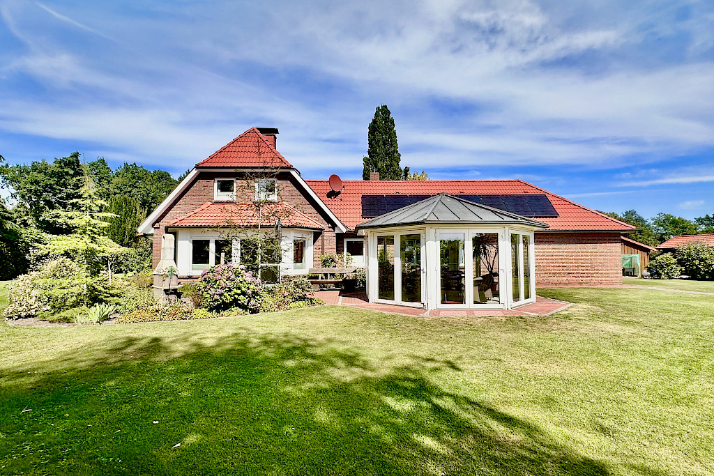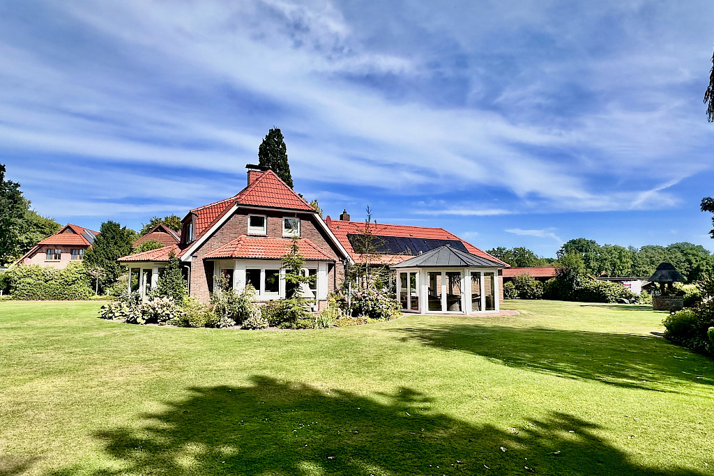 Beeindruckendes Landhaus-Anwesen mit Wintergarten-Pavillon, Oldtimer-Garage, Nebengebäuden, Werkstatt, eingezäuntem Weideland sowie parkähnlichem Gartengrundstück mit Teichanlage in Wiefelstede/ Zentrum