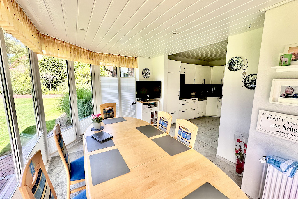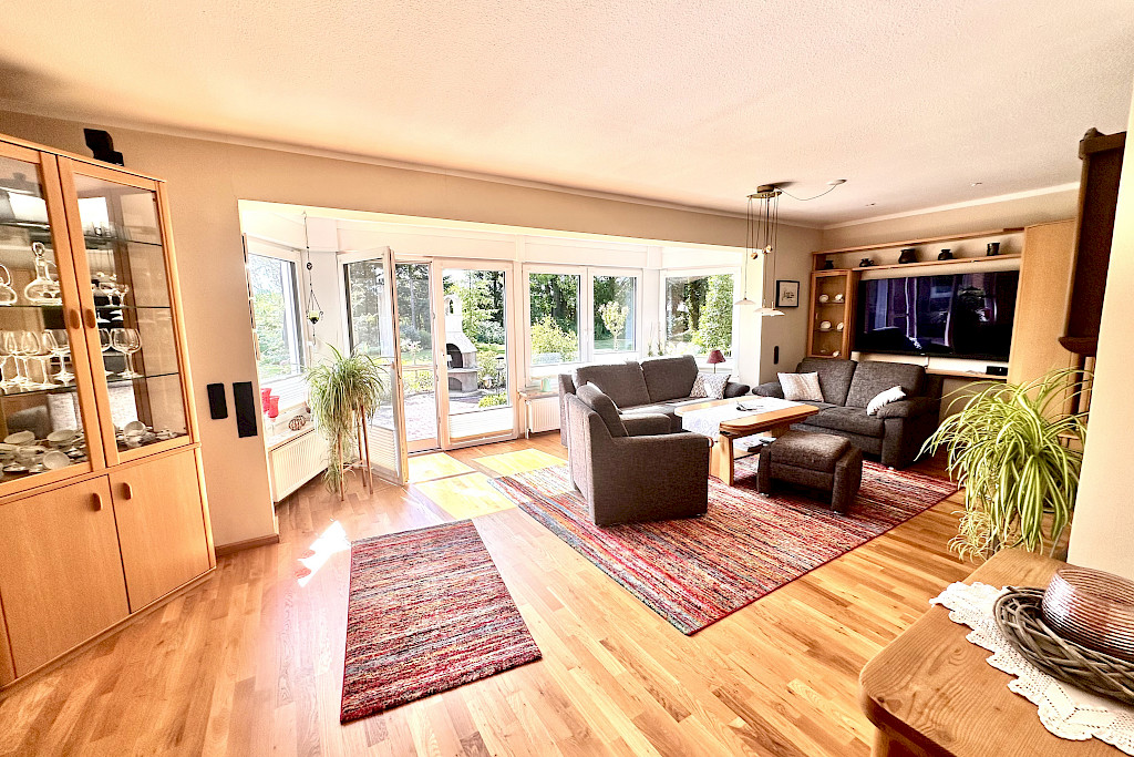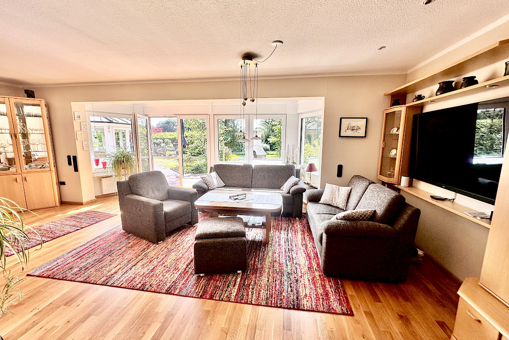 In der reizvollen Parklandschaft Ammerland steht im südlichen Teil der Gemeinde Wiefelstede dieses eindrucksvolle Landhaus- Anwesen mit Nebengebäuden zum Verkauf an. In zentraler und begehrter Wohngebietslage liegt diese Immobilie an einer besonderen Adresse auf einem eindrucksvollen und malerischen Gartengrundstück zur Größe von 5.426 m². Das Haupthaus wurde ursprünglich im Jahre 1951 errichtet. 1986 wurde diese Immobilie von den jetzigen Eigentümern erworben und in umfangreicher Weise umgebaut und durch den Anbau erweitert. Das Wohnhaus unterteilt sich im Erdgeschoss in einen lichtdurchfluteten Wohnbereich mit Kaminofen sowie Panoramafenster und idyllischem Ausblick in die Gartenanlage, eine großzügige Wohnküche inkl. neuwertiger Einbauküche und Erkerbereich, ein geräumiges Schlafzimmer mit angrenzendem Badbereich, ein neu gestaltetes Gäste- WC, ein praktikabler Hauswirtschaftsraum, einen Abstellraum sowie Vorratsraum, Diele mit Treppenaufgang ins Obergeschoss sowie Flurbereiche. Weiterhin verfügt die Erdgeschossebene über eine integrierte Garage mit elektrischem Tor sowie Montagegrube (kann als Wohnraum ausgebaut werden) sowie eine Werkstatt mit eigenem Eingangsbereich. Vom Wohnbereich aus gelangen Sie auf die rückwärtige Terrasse als auch zu dem eindrucksvollen Wintergarten- Pavillon mit faltbaren Fensterelementen. Dieser Wintergarten lädt bei geöffneten Fenstern inmitten der Natur zum Verweilen ein; aber auch bei kühlen Temperaturen verzaubert der achteckige Wintergarten-Pavillon durch seinen Kaminofen eine behagliche Wohlfühlatmosphäre. Das Obergeschoss des Wohnhauses unterteilt sich in drei Schlafräume, ein neu gestaltetes Duschbad/ WC sowie Flurbereich. Abgerundet wird dieses beeindruckende Immobilienangebot durch die parkähnliche Gartenanlage mit einer idyllischen Teichanlage, einer Oldtimergarage für 2 PKWs (beheizbar und isoliert – alternativ auch als Partyraum geeignet), eine Garage in der Remise, ein Nebengebäude für Gerätschaften sowie die eingezäunte Weidekoppel mit separater Zufahrt. Das Zentrum von Wiefelstede mit vielfältigen Einkaufs- und Versorgungsmöglichkeiten ist in wenigen Minuten zu Fuß oder mit dem Fahrrad zu erreichen. Ebenfalls sind die Residenzstadt Oldenburg als auch der bekannte Kur- und Ferienort Bad Zwischenahn in wenigen Autominuten zu erreichen. Vereinbaren Sie Ihren persönlichen Besichtigungstermin und lassen Sie sich verzaubern.