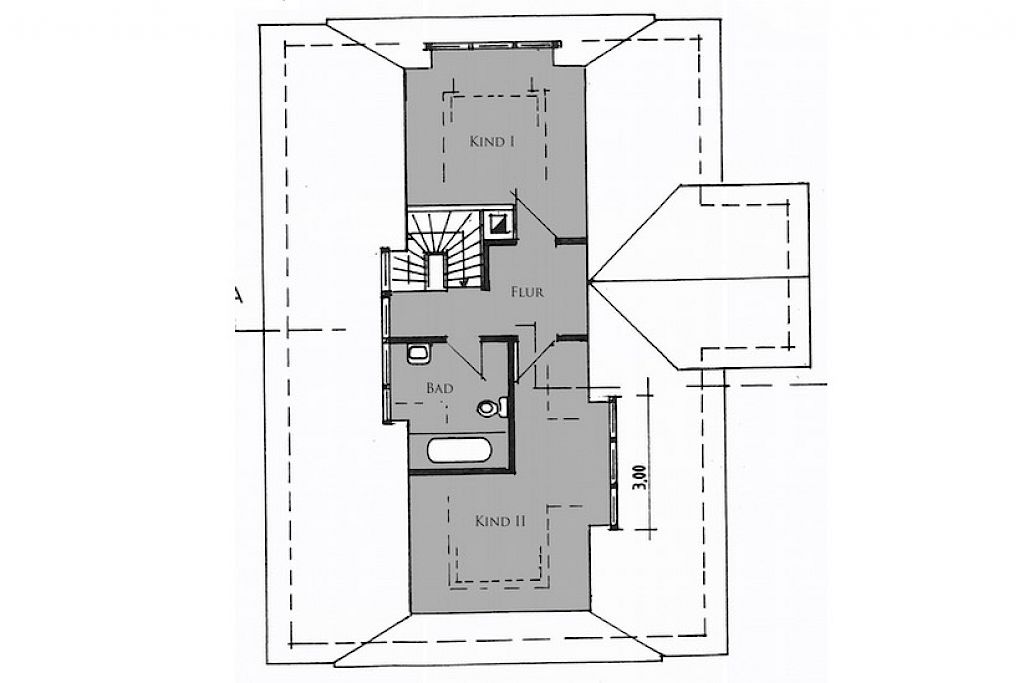- Neugestaltung des Dachgeschosses mit zwei Kinderzimmer sowie einem modernen Badbereich und Flur mit offener Echtholz- Eichentreppe ins Erdgeschoss (Realisierung im Jahre 2004)
