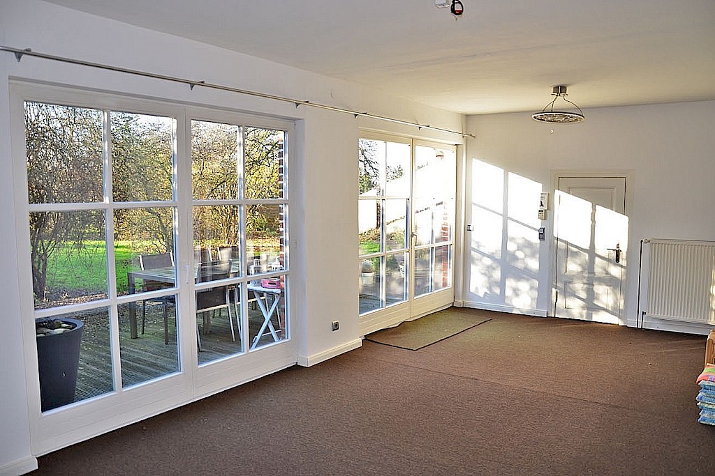 - bodentiefe Fensterelemente im Wohnbereich dienen als Zugang zur Außenterrasse und sorgen für ein lichtdurchflutetes Wohnambiente