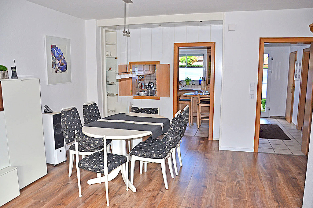 - hochwertiger Laminat-Fußboden im Wohn- und Esszimmer in edlem Holzdesign