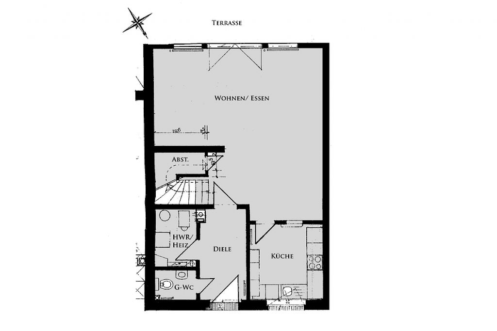 - Fußböden in der Küche, im Hauswirtschaftsraum und in der Diele hell gefliest