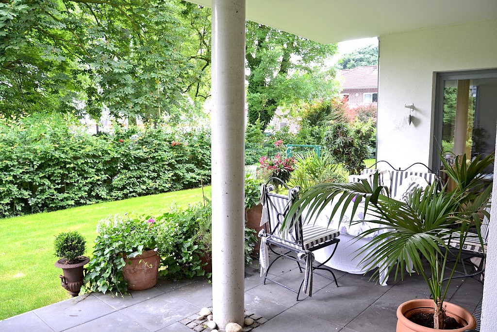 Die Erdgeschoss- Wohnung Nr. 1 wird Sie von Anfang an begeistern und beeindrucken mit einer großzügigen Raumgliederung, lichtdurchfluteten Räumlichkeiten, einer hochwertigen Ausstattung (u. a. Fußbodenheizung, Dreischeibenverglasung) sowie der modernen Architektur. Die gesamte Wohnung (ausgenommen Badbereiche) wurde mit einem ansprechenden Parkettfußboden versehen. Ebenso wurden die Badbereiche mit ausgewählten Fliesen und aparten Sanitärobjekten ansprechend gestaltet. Dieses Immobilienangebot verfügt insgesamt über eine Wohnfläche von ca. 116 qm und besticht insbesondere durch den überdachten Terrassenbereich mit kleinem Gartenbereich in idealer Südwestausrichtung (Gartenbereich wird von einem Gärtner gepflegt). Die erstklassige Erdgeschosswohnung unterteilt sich in einen großzügigen Wohn- und Essbereich mit offen gestaltetem Kochbereich (inkl. Einbauküche) sowie Zugang zur Terrasse, ein geräumiges Schlafzimmer mit Zugang zum Wohlfühl- Duschbad en suite, ein weiterer Schlafraum bzw. Büro/ Gästezimmer, ein Gäste- WC, Flurbereich sowie eine Eingangsdiele. Weiterhin bietet dieses Immobilienangebot einen PKW-Stellplatz auf dem Hausgrundstück sowie einen separaten Kellerabstellraum. Vor allem die Lage der Immobilie wird Sie verzaubern.