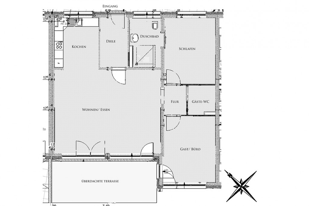 - Innentür zum Gäste-WC und zum Duschbad als praktikable Schiebetür ausgeführt