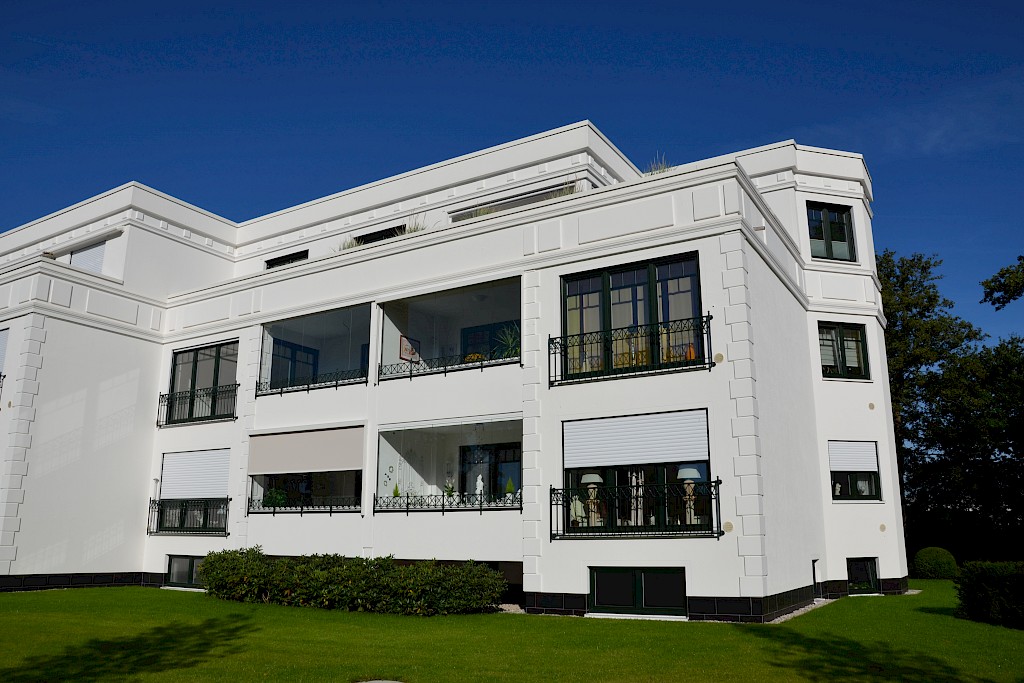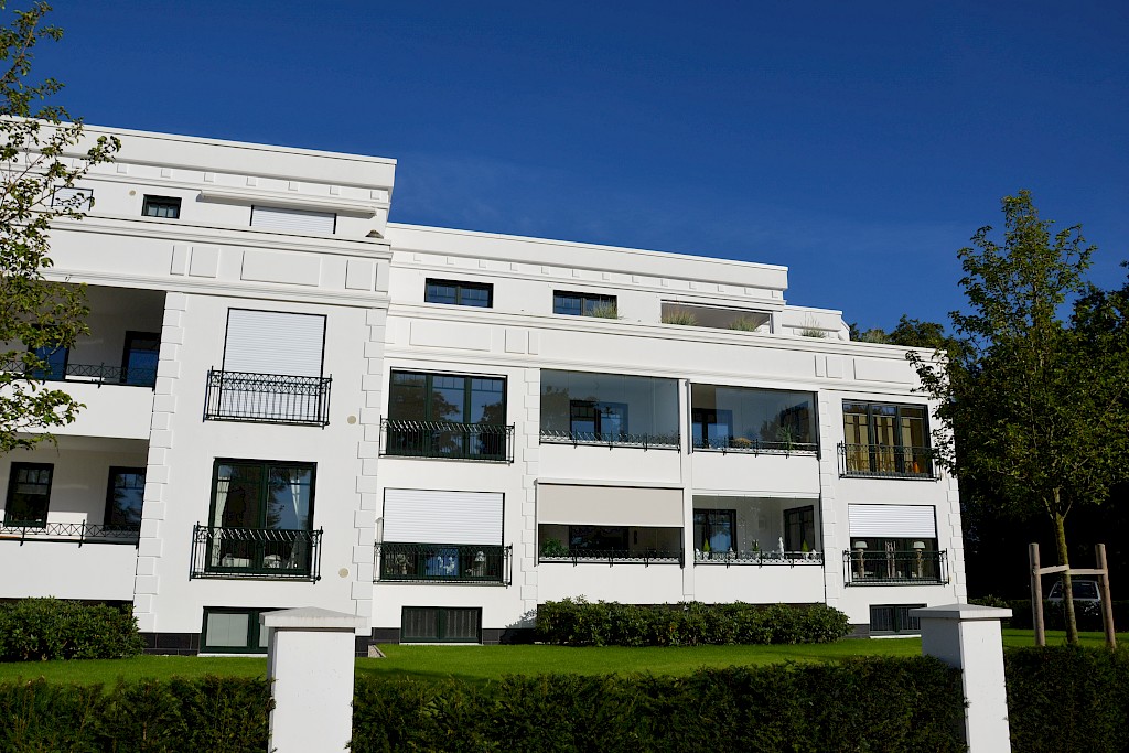 In zentraler, begehrter Wohnlage von Bad Zwischenahn sind diese eleganten Eigentumswohnungen im klassischen Hamburger Villenstil im Jahre 2014 errichtet worden. Auf dem neu erschlossenen Grundstück "auf Hardenberg" zur Größe von 3.898 qm wurden vier Häuser mit je 5 durchdachten Eigentumswohnungen errichtet. Alle Wohnungen verfügen über eine optimale Südausrichtung und bieten ein Höchstmaß an Komfort, Qualität und Privatleben. Eine der stilvollen Hochparterrewohnungen mit ca. 88 qm Wohnfläche steht nunmehr zum Verkauf an. Selbstverständliche Auszeichnungen dieses Wohndomizils sind u. a. Liftanlage in jedem Haus, modernste Erdwärmetechnik, elektrische Außenrollläden sowie höchste Qualität. Die exklusive Wohnung Nr. 15B unterteilt sich in einen lichtdurchfluteten Wohn- und Essbereich mit Zugang zur verglasten Südloggia "Sommergarten", ein offen gestalteter Kochbereich inkl. erstklassiger Einbauküche, ein großzügiges Schlafzimmer mit modernem Duschbad en suite, ein hell gestaltetes Gäste-WC, einen Waschmaschinenraum, einen Abstellraum sowie eine einladende Eingangsdiele mit Garderobenbereich. Weiterhin verfügt der Hochkellerbereich über einen hellen separaten Abstellraum für die Wohnung Nr. 15B. Im Außenbereich ist für die Wohnung eine direkt zugeordnete Garage vorhanden (Kaufpreis für die Garage 12.000,00 €). Zur gemeinschaftlichen Nutzung steht ein großzügiges Fahrradhaus im Außenbereich sowie ein Trockenraum im Kellergeschoss zur Verfügung. Sichern Sie sich Ihren Wohntraum schon heute und erfüllen Sie Ihre persönlichen Wünsche.