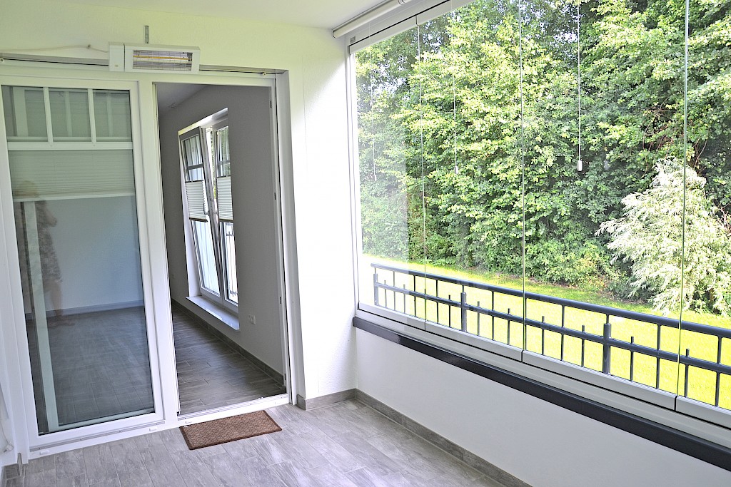 - die Loggia ist weiterhin ausgestattet mit einem Decken- Heizstrahler sowie mit innenliegenden Rollos zur Beschattung der Verglasung
