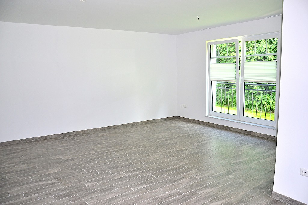 - Die gesamte Wohnung ist mit einem einheitlichen hochwertigen Fliesenboden in Holzoptik gestaltet