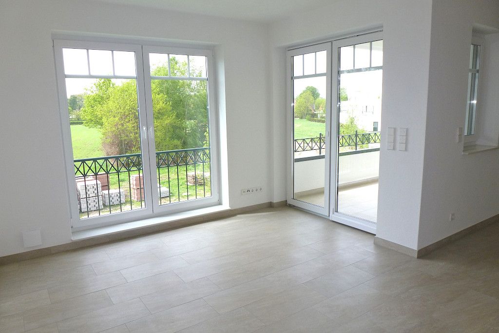 - geschützt liegende, überdachte Loggia in optimaler Südwestausrichtung, mit hochwertigem frostsicherem Fliesenbelag sowie Balkonbrüstung und feuerverzinktem Geländer (es ist somit nachträglich möglich, dass eine rahmenlose Faltverglasung „sog. Sommergarten“ installiert wird, somit entsteht ein wintergartenähnlicher Platz zum Wohlfühlen und Entspannen.