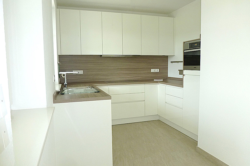 - moderne Einbauküche mit weißen Fronten sowie Holzarbeitsplatte sowie hochwertigen MIELE- Elektrogeräten (bereits im Kaufpreis vorhanden)