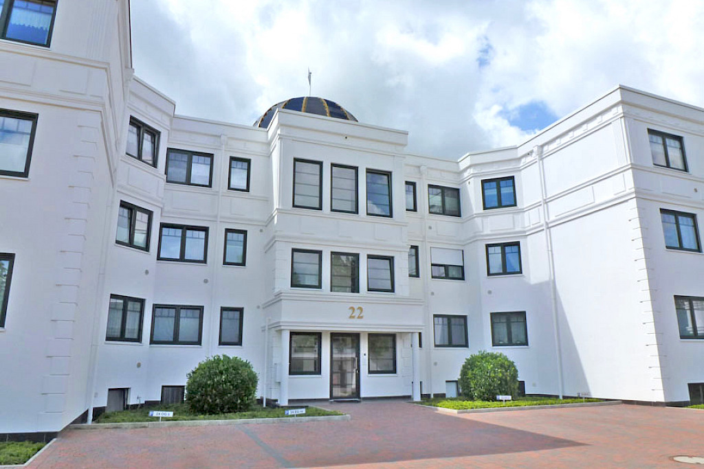In begehrter, zentraler Wohnlage des beliebten Kurortes Bad Zwischenahn entstanden diese stilvollen Eigentumswohnungen im eleganten Hamburger Villenstil. Die Architektur verbindet klassische Ästhetik mit modernem Wohnkomfort und schafft ein exklusives Wohnambiente. Durch die ideale Südausrichtung genießen alle Wohnungen eine helle, freundliche Atmosphäre und viel Privatsphäre. Zum Verkauf steht eine attraktive Obergeschosswohnung mit ca. 53 m² Wohnfläche, die sich durch eine durchdachte Raumaufteilung und hochwertige Ausstattung auszeichnet. Der lichtdurchflutete Wohn- und Essbereich bildet das Herzstück der Wohnung und bietet direkten Zugang zur überdachten Südloggia – ein idealer Ort zum Entspannen. Der offen gestaltete Kochbereich ist mit einer hochwertigen Einbauküche inklusive exklusiver Elektrogeräte der Marke Miele ausgestattet. Ergänzt wird das Raumangebot durch ein großzügiges Schlafzimmer, ein stilvolles Duschbad mit WC, einen praktischen Abstellraum sowie einen einladenden Flurbereich. Das gepflegte Wohnensemble überzeugt durch zahlreiche komfortable Ausstattungsdetails. Selbstverständlich verfügt jedes Haus über eine Liftanlage. Hochwertige Materialien, eine ansprechende Architektur und eine sorgfältige Bauausführung unterstreichen den gehobenen Charakter dieser Immobilie. Zur Wohnung gehört ein separater, heller Abstellraum im Hochkeller. Im Außenbereich steht für die Wohnung B3 im 1. Obergeschoss ein fest zugeordneter Carport-Stellplatz zur Verfügung. Zudem befindet sich ein großzügiges Fahrradhaus zur gemeinschaftlichen Nutzung auf dem Grundstück. Die Wohnung ist derzeit vermietet und stellt somit eine attraktive Kapitalanlage in einer der gefragtesten Wohnlagen Bad Zwischenahns dar. Für weitere Informationen oder zur Vereinbarung eines Besichtigungstermins stehe ich Ihnen selbstverständlich gerne zur Verfügung.