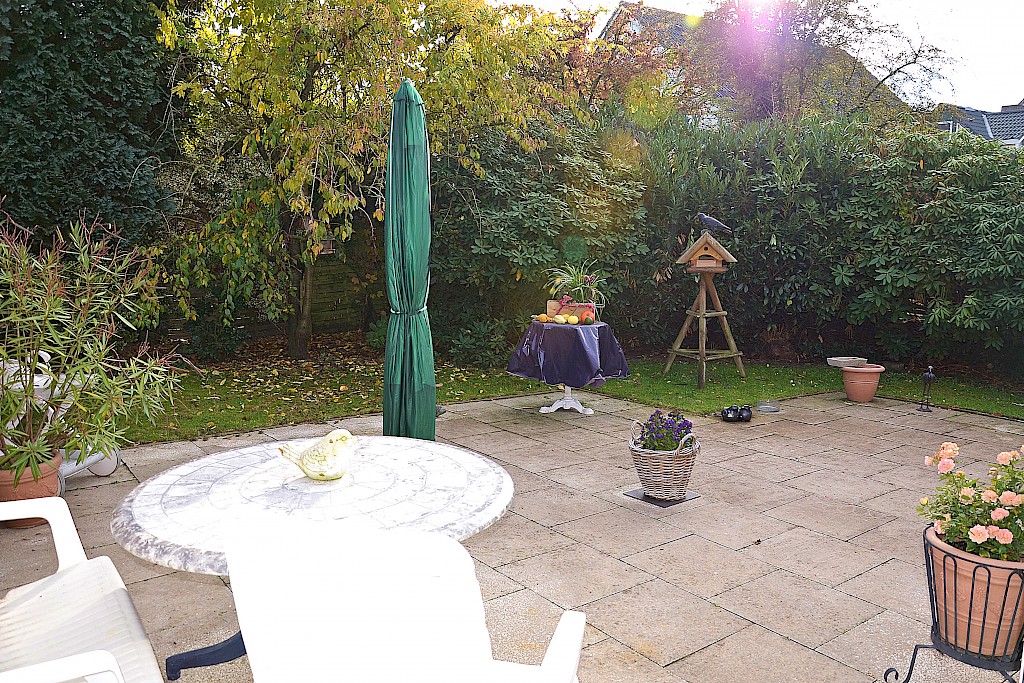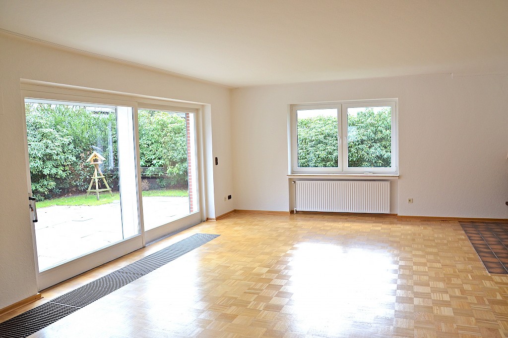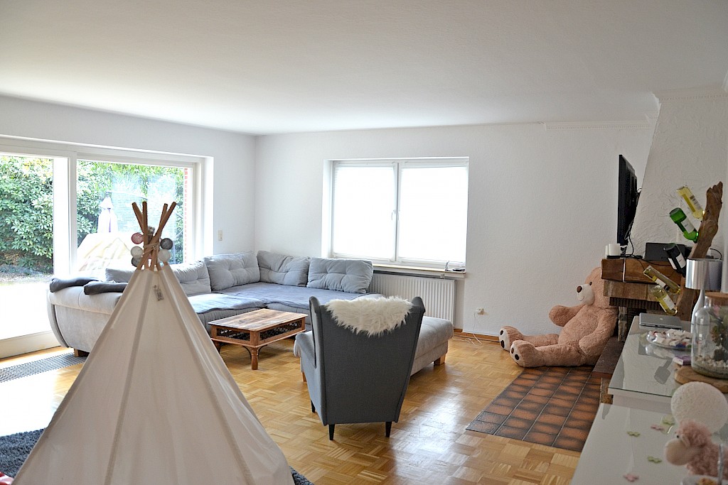 • großzügiges Wohn- und Esszimmer mit großem Fensterschiebelement als Zugang zur geschützt liegenden Südwest-Terrasse, angrenzender Essbereich, Wohnküche inkl. gepflegter Einbauküche, zwei Schlafzimmer, 1 hell gestalteter Badbereich mit Badewanne und Dusche, geräumige Eingangsdiele, Gäste-WC, Hauswirtschaftsraum, Flurbereich sowie Abstellräume