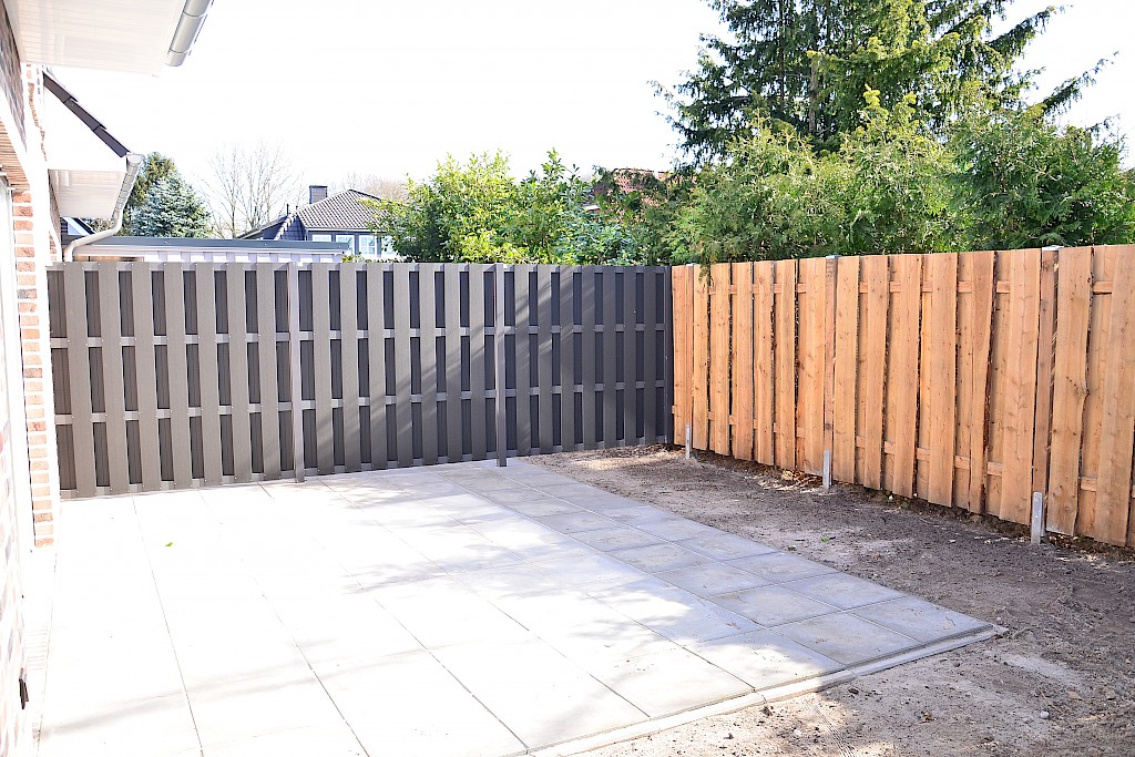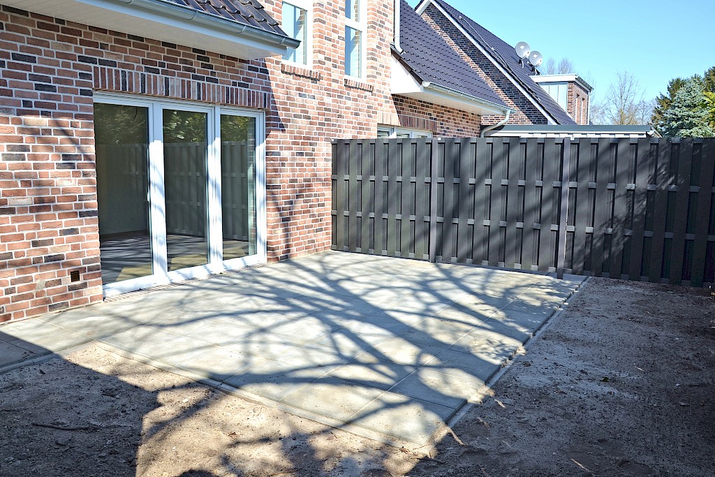 - im rückwärtigen Gartenbereich wurde eine großzügige Terrasse in Südost-Ausrichtung geschaffen
