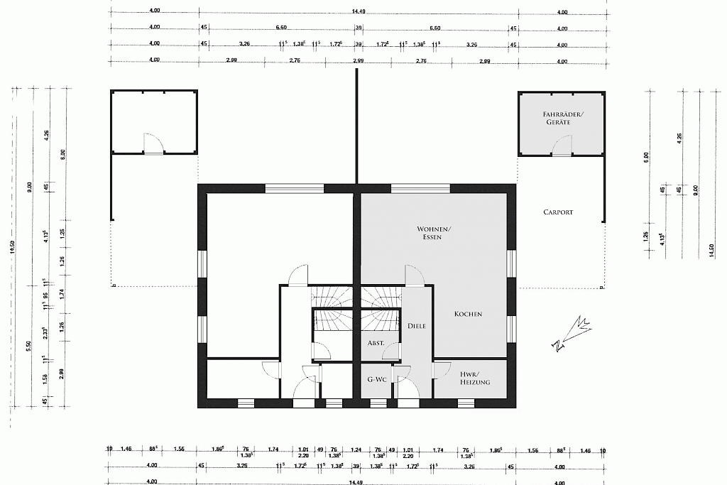 - ebenfalls wurde ein großer Geräte- Abstellraum für Fahrräder und Gartengeräte errichtet