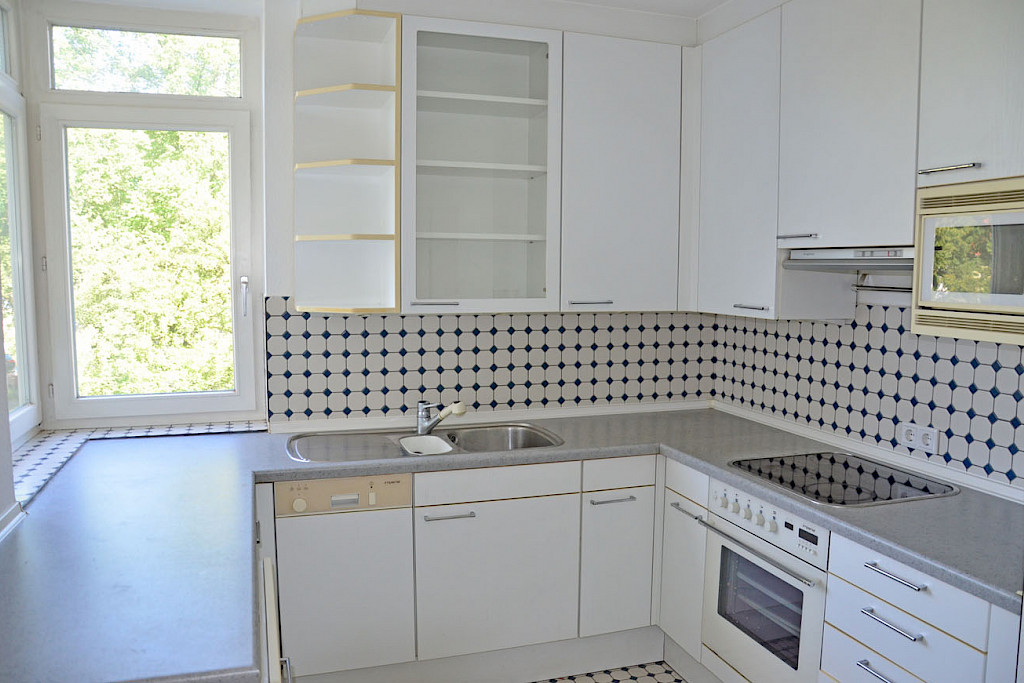 Im 2. Obergeschoss eines ansprechenden Mehrfamilienhauses mit Lift in beliebter Wohnlage am Haarenufer in Oldenburg/ nahe Dobbenwiese steht diese komplett renovierte Obergeschosswohnung mit ca. 106 m² Wohnfläche zur Vermietung an. Das Mietangebot (4 ZKB) beeindruckt durch die gelungene Raumaufteilung mit lichtdurchflutetem Wohnbereich mit Zugang zum sonnigen Balkon, Wohnküche inkl. Einbauküche, zwei geräumige Schlafzimmer, ein Gästezimmer/ Büro, ein neu gestalteter Badbereich mit Dusche und Wanne, Gäste-WC sowie Eingangsdiele. Die geräumige 4 Zimmer- Wohnung (mit Fußbodenheizung) wurde vom Vermieter in liebevoller Weise komplett renoviert, u. a. mit neuem Linoleum- Designboden in Holzoptik, Malerarbeiten sowie kompletter Neugestaltung des Badbereiches und Gäste-WCs. Abgerundet wird dieses interessante Mietangebot durch einen separaten Kellerraum sowie einen Carport- Stellplatz auf dem Hintergrundstück.