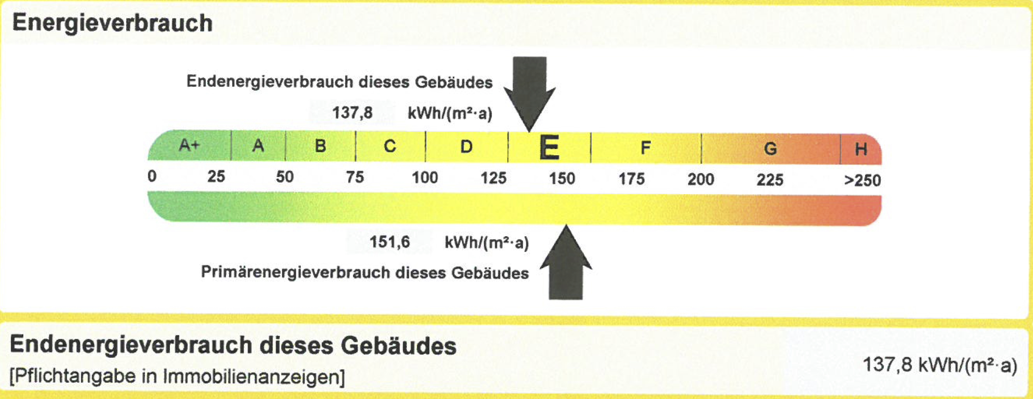- Energieverbrauchskennwert 137,8 kWh/(m²*a)