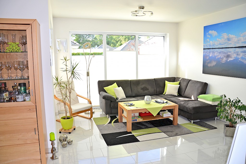 - die gesamte Wohnung ist mit einem edlen Hochglanz- Fliesenfußboden im modernen Rechteckformat gestaltet