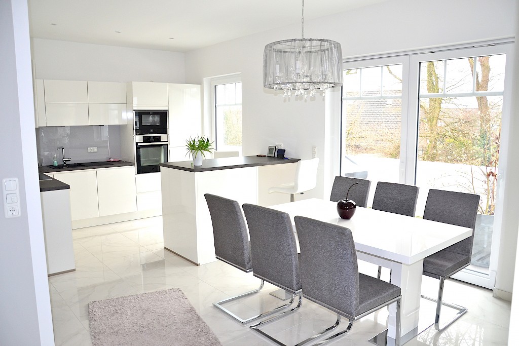 - die Innentüren mit entsprechender Holzzarge werden als weiße Qualitätstüren mit Edelstahl- Drückergarnitur eingebaut.