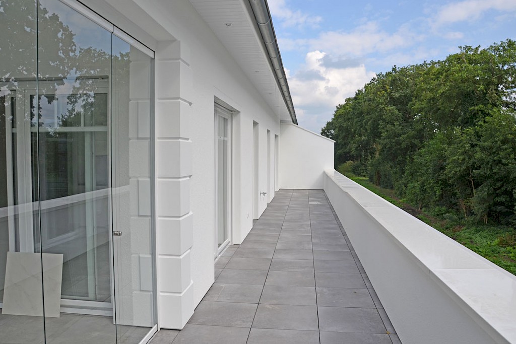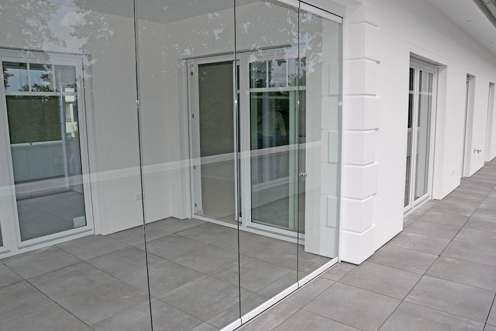 - die Dachterrasse wurde mit ansprechenden Terrassenplatten gestaltet. Der überdachte Bereich der Dachterrasse ist mit einer faltbaren Verglasung „Sommergarten“ ausgestattet. So ist ein geschützter, wintergartenähnlicher Platz entstanden.