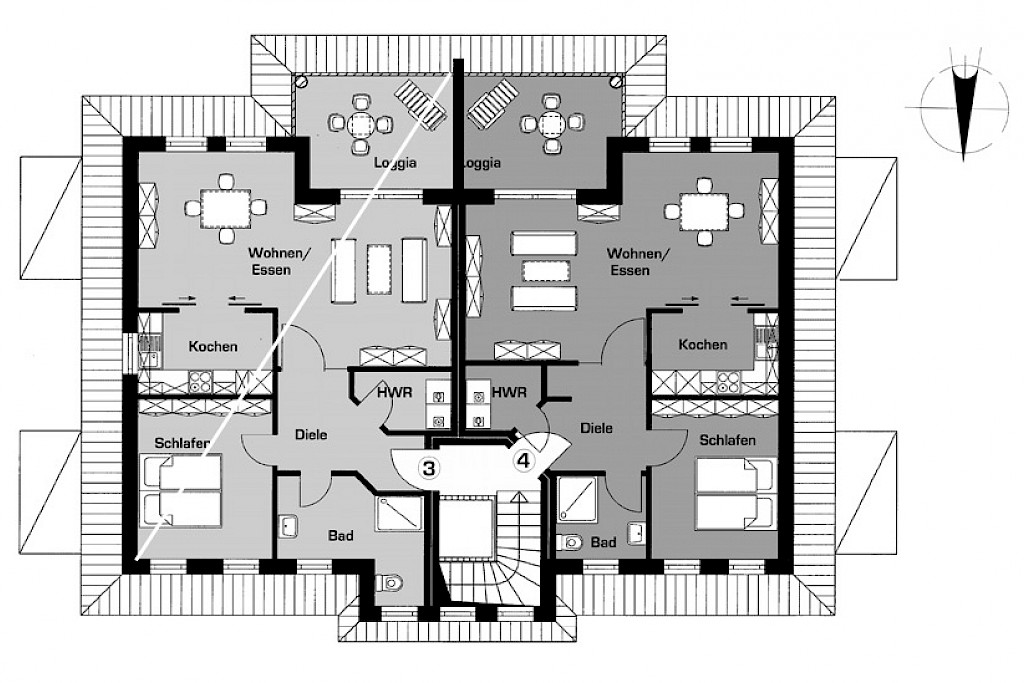 - die Loggia im Dachgeschoss in idealer Südausrichtung ist mit Terrassenplatten gestaltet