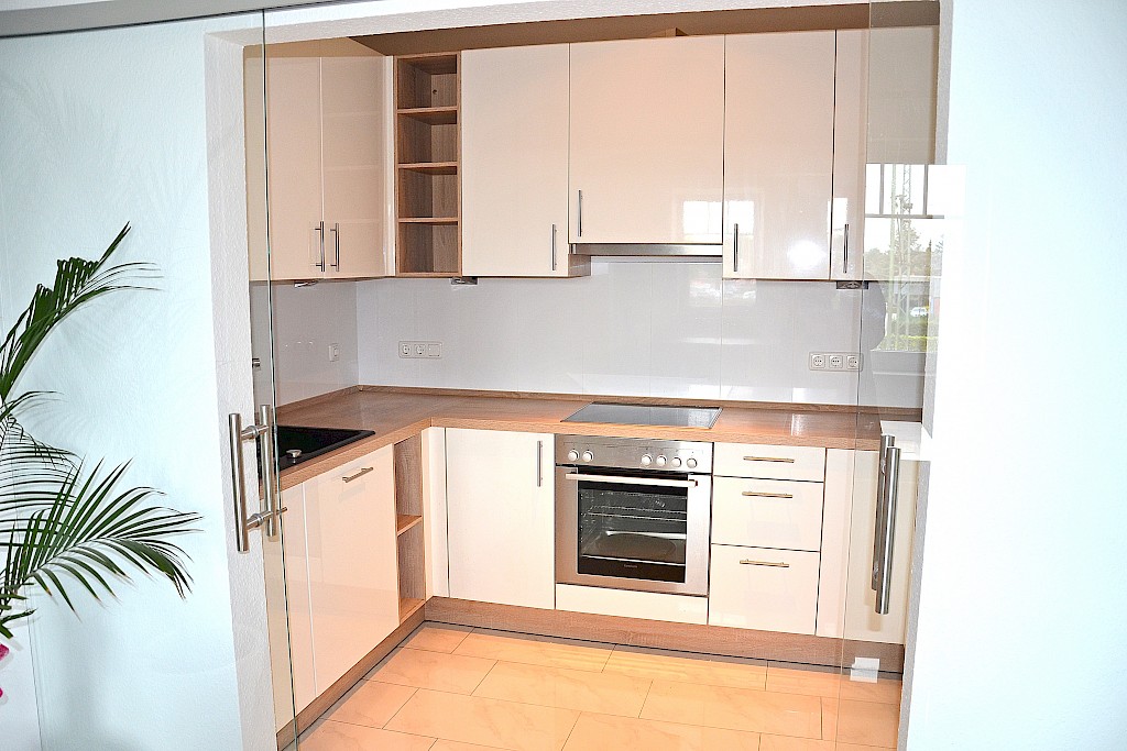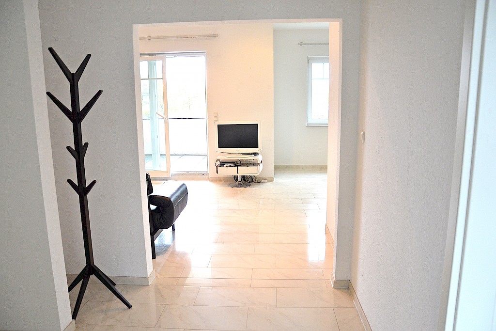 - die gesamte Wohnung wurde mit einem einheitlichen Fliesenboden im modernen Rechteckformat gestaltet (helle Fliesen in Marmoroptik)