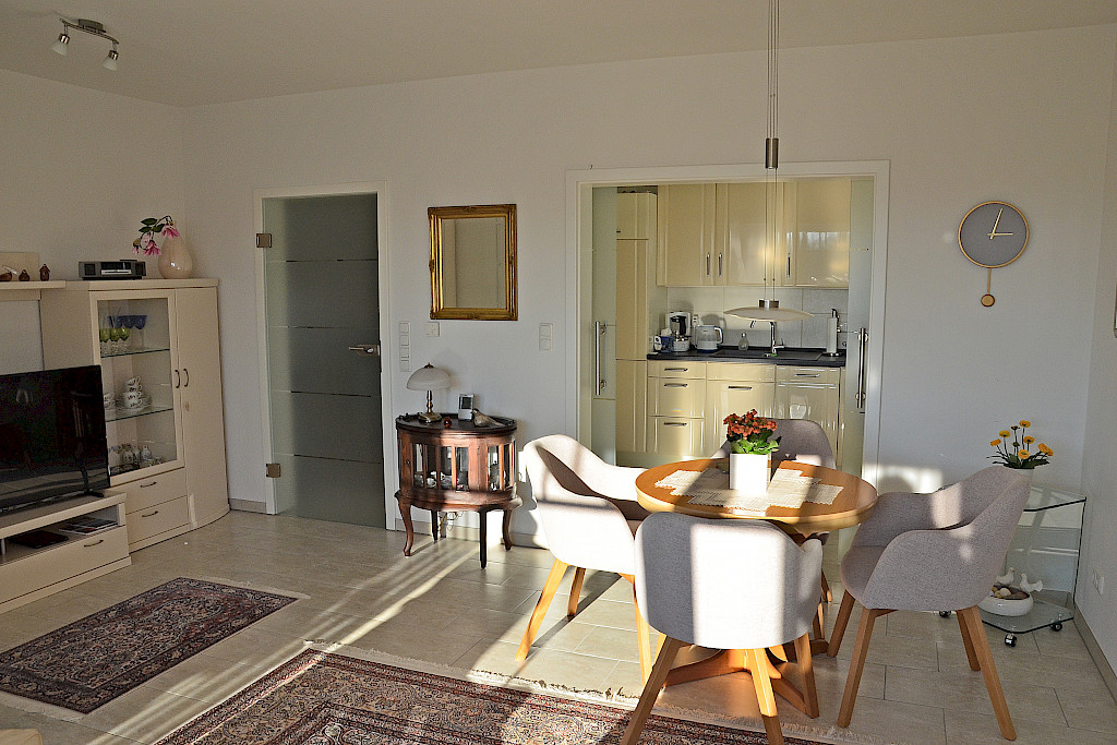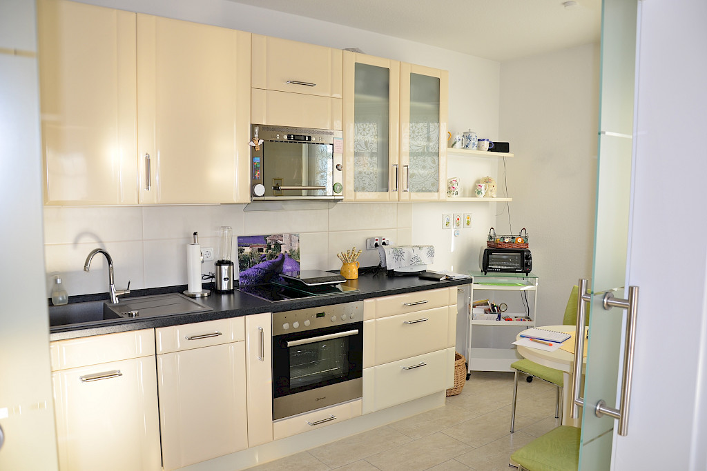 - die Fußböden in der Wohnung sind einheitlich gestaltet mit einer modernen hellen Bodenfliese