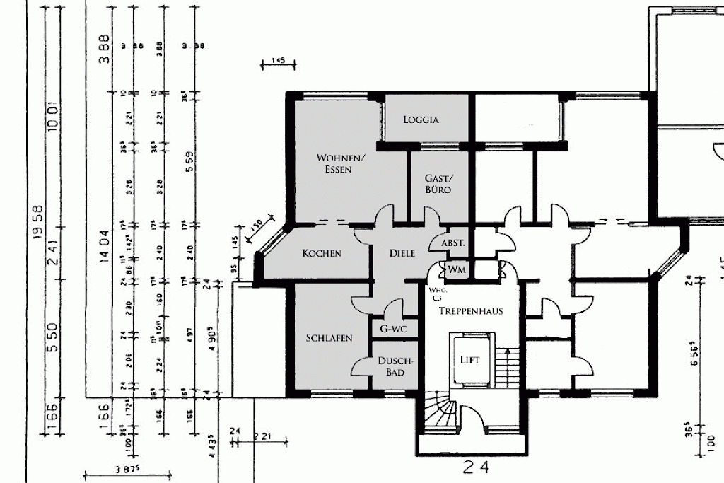 - jedes Treppenhaus ist mit einem elektrobetriebenen Personenaufzug versehen