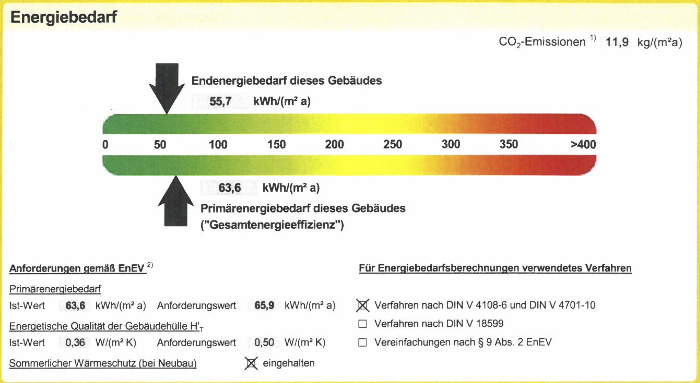 - Endenergiebedarf 55,7 kWh/(m²*a)