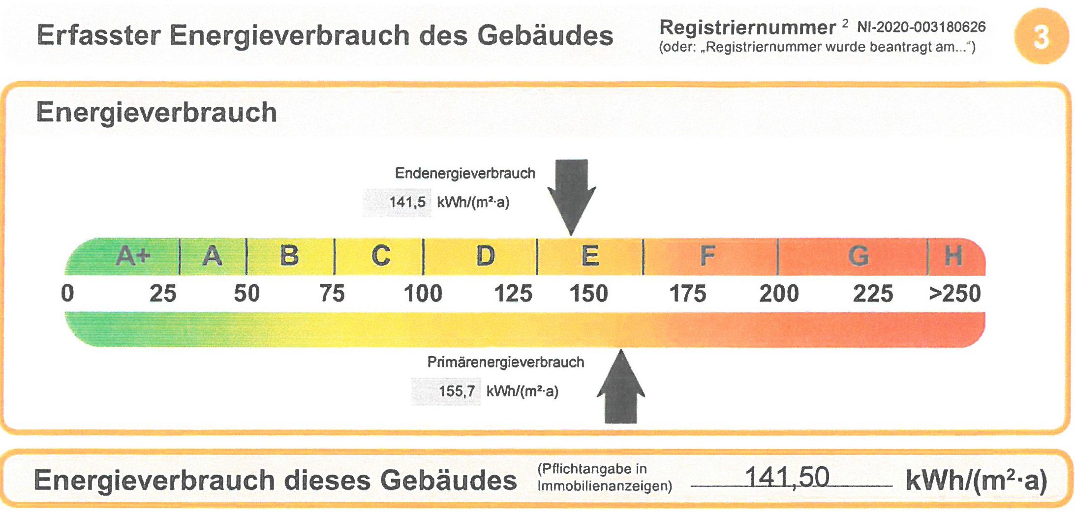 • Energieverbrauchskennwert 141,5 kWh/(m²*a)