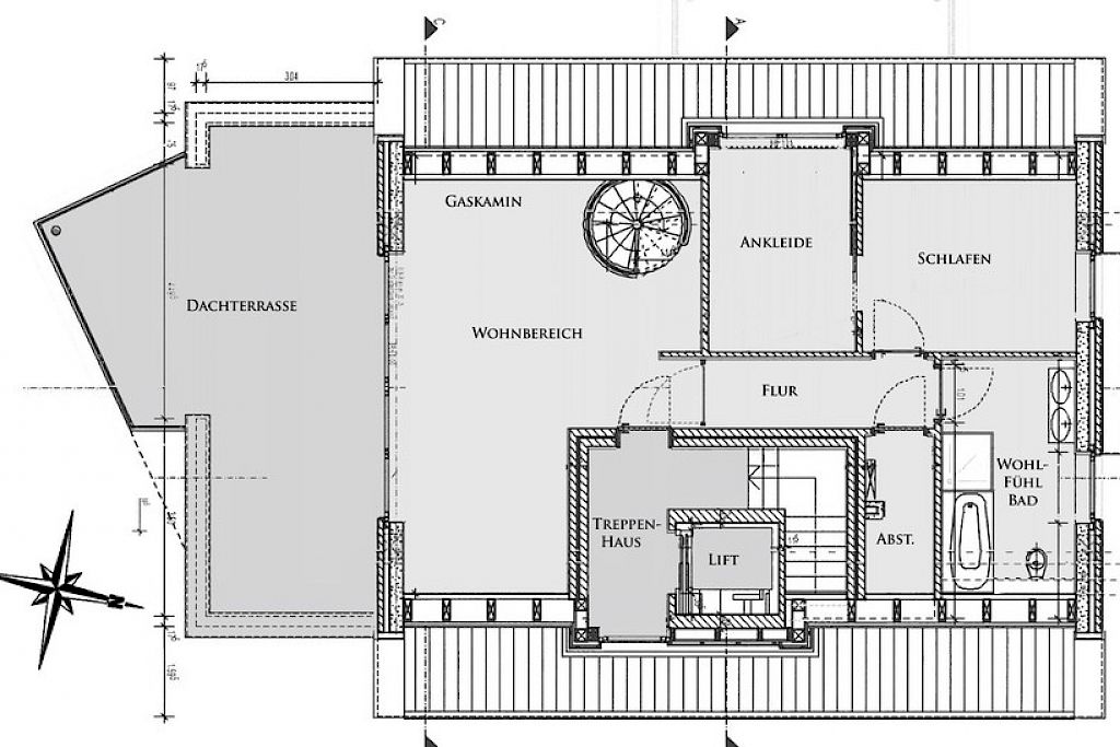 • Geschossdecken Treppenhaus als Stahlbetonmassivdecken; Zwischendecke Dachgeschoss Spitzboden als Holzbalkendecke