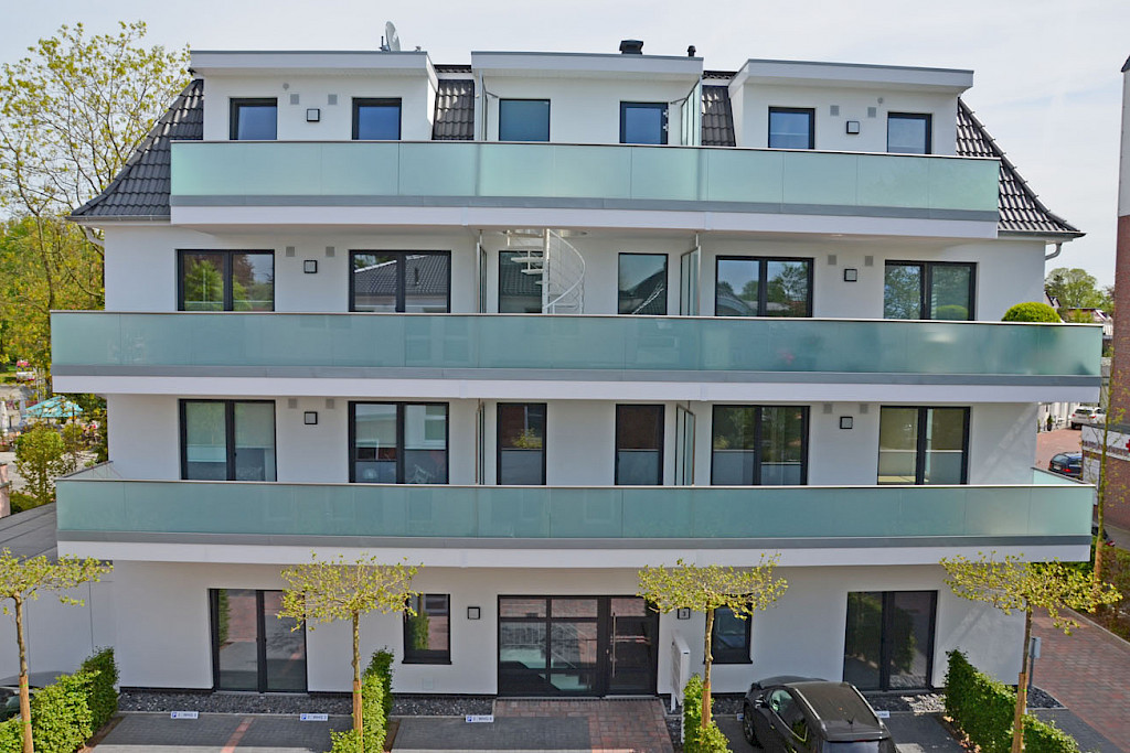 - die Balkone /Loggien der Wohnungen wurden mit einen hochwertigen Bodenbelag gestaltet, Balkongeländer sind aus Edelstahl mit Glasfüllung