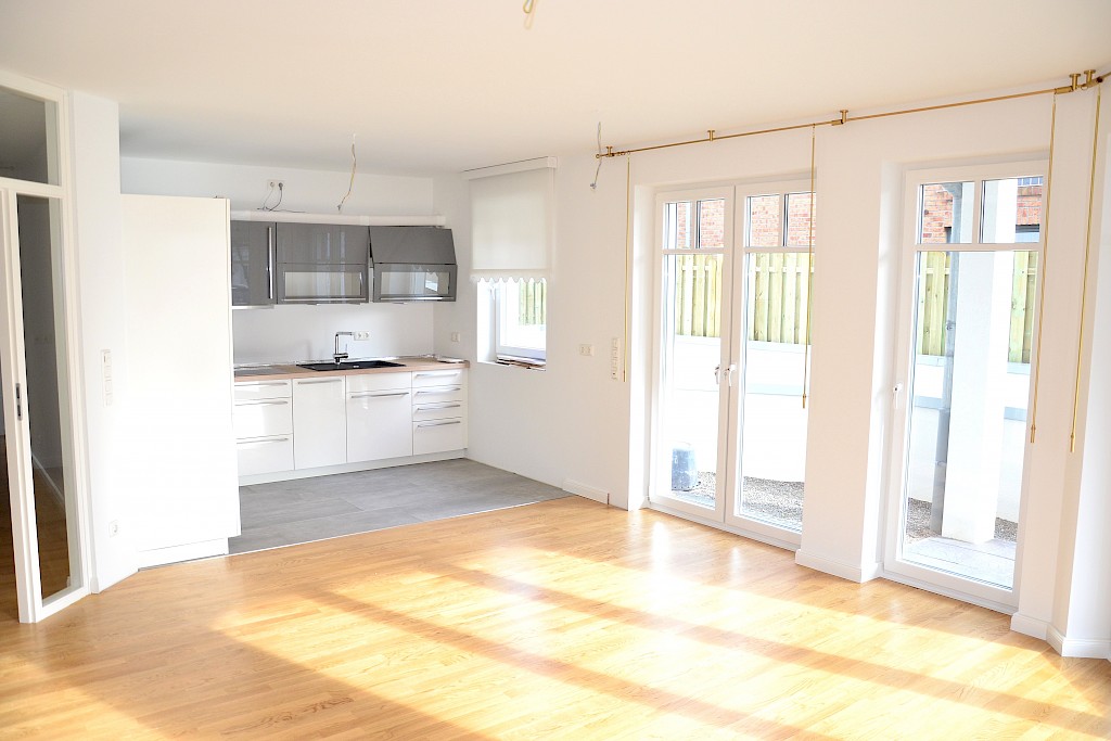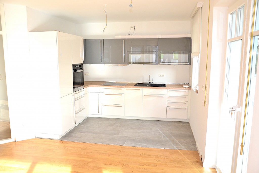 - Der Fußboden in der Wohnung wird mit einem edlen Echtholz- Parkett in Eiche natur (ausgenommen Gäste-WC, Bad und Kochbereich)