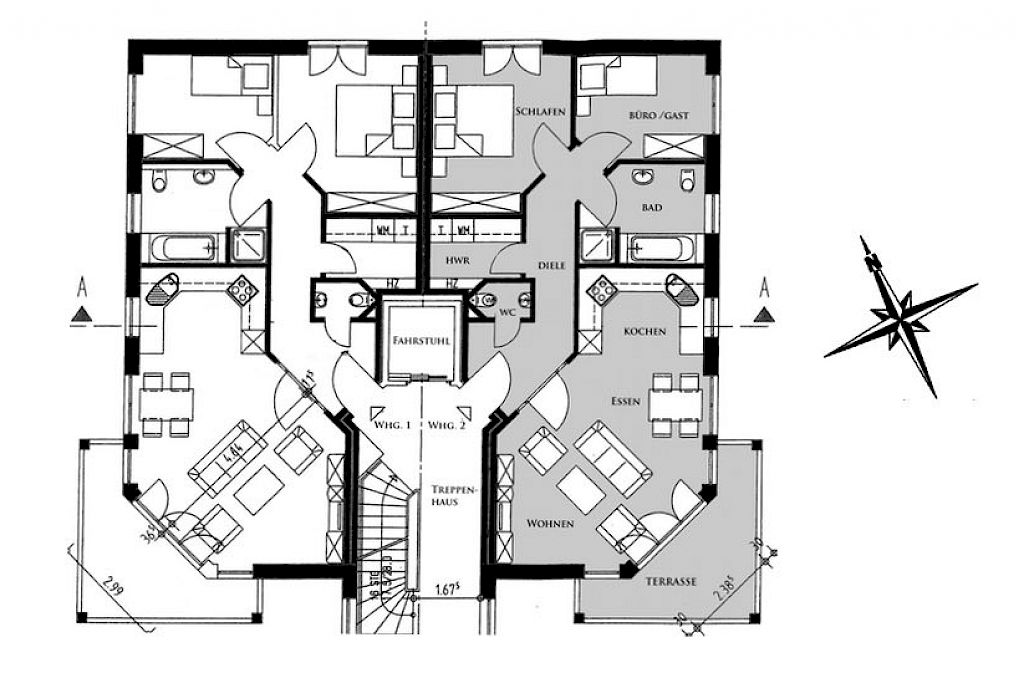 - das Fünffamilienhaus verfügt über eine Aufzugsanlage vom Kellergeschoss bis in die Penthouse- Wohnung