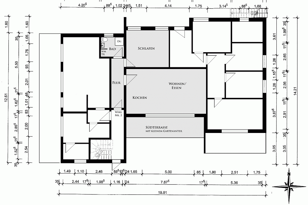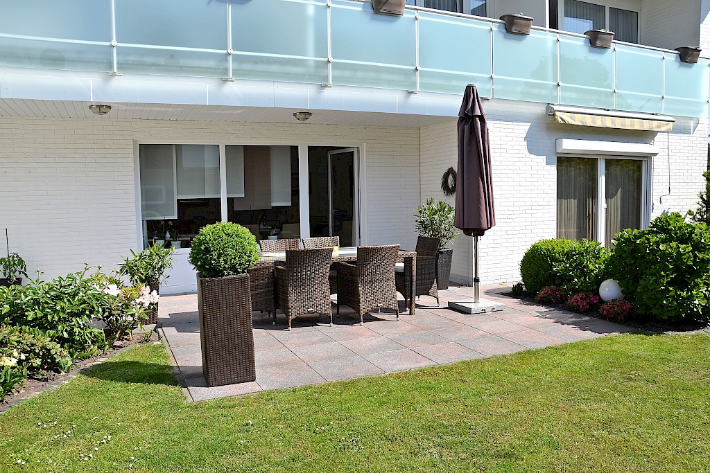• große Terrasse in optimaler Südausrichtung mit kleinem Gartenbereich.