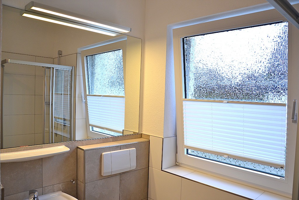 • Gas- Zentralheizung mit Warmwasseraufbereitung (Fabrikat: Vailllant, Baujahr 2012); zur Wärmeverteilung in den Räumen sind weiße Plattenheizkörper jeweils mit Thermostatventil vorhanden