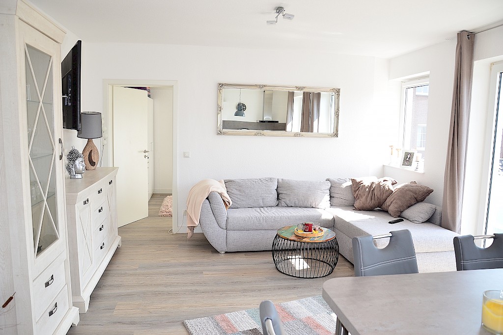 Zur Vermietung steht die moderne Obergeschosswohnung Nr. 6 und besticht durch seine lichtdurchfluteten Räumlichkeiten und sorgt somit für eine behagliche Wohlfühl- Atmosphäre. Die Mietwohnung unterteilt sich in einen großzügigen Wohn- und Essbereich mit offen gestaltetem Kochbereich inkl. neuwertiger Einbauküche mit Arbeitsinsel, ein geräumiges Schlafzimmer, ein hell gestaltetes Duschbad, ein Gäste- WC sowie Eingangsbereich mit Garderobe. Vom Wohnbereich als auch vom Schlafzimmer aus gelangen Sie auf den sonnigen Balkon in optimaler Westausrichtung. Zum Mietangebot gehören weiterhin ein PKW- Stellplatz auf dem Hausgrundstück sowie ein gemeinschaftlich genutzter Abstellraum für Fahrräder.