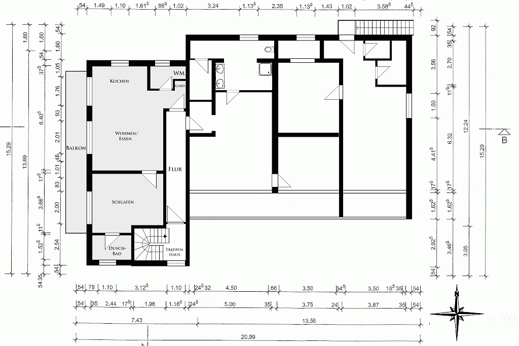 - sämtliche Fenster in weißer Kunststoffausführung mit Isolierverglasung, bodentiefe Fensterelemente als Zugang zum Westbalkon