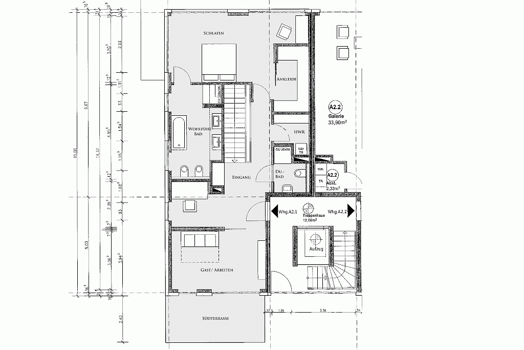 - jede Villa erhält eine verglaste Aufzugsanlage von der Tiefgarage bis zu den Wohnungen