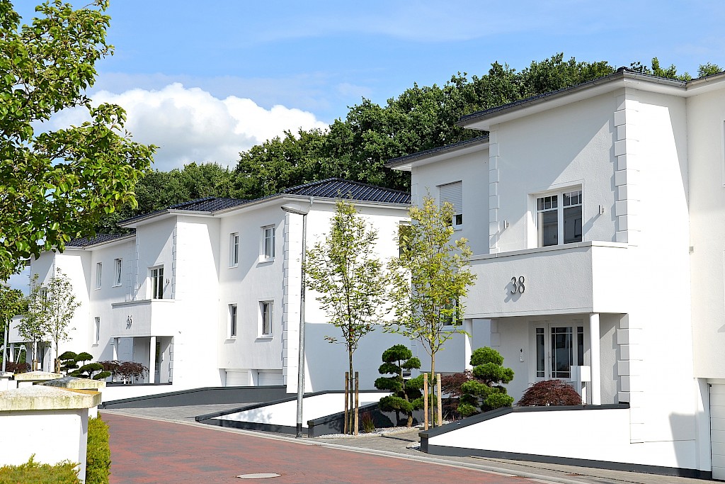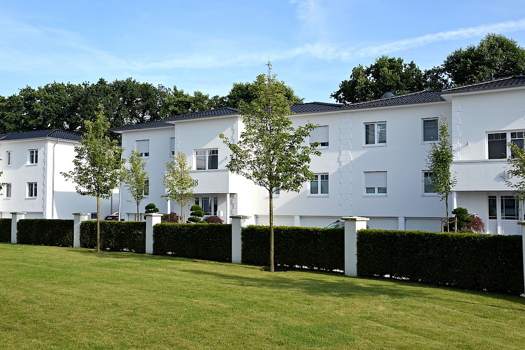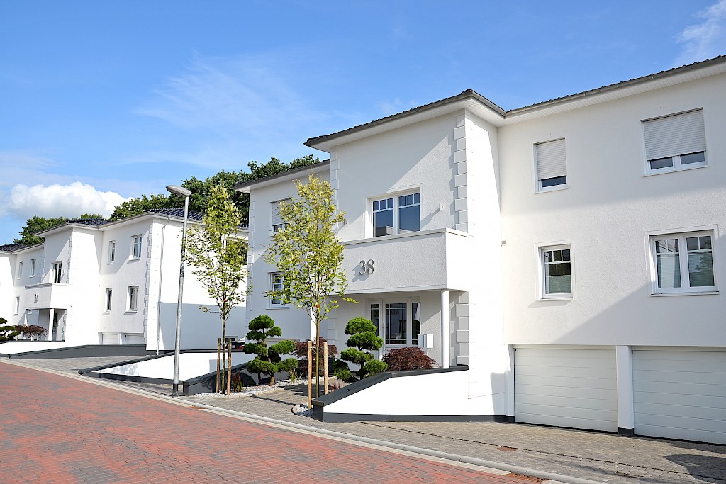 In zentraler, begehrenswerter Wohnlage des beliebten Kur- und Ferienortes Bad Zwischenahn sind in dem beeindruckenden Wohngebiet "auf Hardenberg" sechs Dreifamilienhäuser mit je zwei Komfort- Wohnungen in der Hochparterre sowie einer eindrucksvollen Penthouse-Wohnung errichtet worden. Unterhalb der Häuser im Hochkellerbereich verfügt die Immobilie über großzügige Garagenstellplätze mit elektrischem Sektionaltor sowie geräumige Abstellräume für jede Wohnung. Alle Häuser sind mit einem komfortablen Lift vom Garagengeschoss bis direkt in die Penthouse- Wohnungen ausgestattet. Zur Vermietung steht die charmante Hochparterre- Wohnung Nr. 2 im Haus 40. Die erstklassige Wohnung verfügt über eine optimale Südausrichtung und beeindruckt durch ausgesuchte Ausstattungsmerkmale, höchste Qualität, eine gelungene Raumgliederung sowie eine Bauausführung mit viel Liebe zum Detail. Selbstverständliche Ausstattungsmerkmale der „Chalets auf Hardenberg“ sind elektrische Außenrollläden, behagliche Fußbodenheizung mit Einzelraumsteuerung, aparte Badausstattung inkl. Badradio sowie modernste Materialienauswahl. Die 2- Zimmer- Eigentumswohnung Nr. 2 in der Hochparterre (Haus 40) verfügt über eine Wohnfläche von 64 qm. Die moderne Wohnung verzaubert durch eine ausgezeichnete Raumaufteilung sowie optimale Lichtverhältnisse. Die aparte Wohnung unterteilt sich in einen lichtdurchfluten Wohn- und Essbereich mit angrenzendem offen gestaltetem Kochbereich (ohne Einbauküche), eine geschützt liegende Südloggia, ein geräumiges Schlafzimmer, ein Wohlfühl- Badbereich mit begehbarer Dusche, Abstellraum sowie eine freundliche Eingangsdiele. Zur Wohnung gehören weiterhin ein großzügiger Kellerraum sowie der Tiefgaragen- Stellplatz Nr. 2.