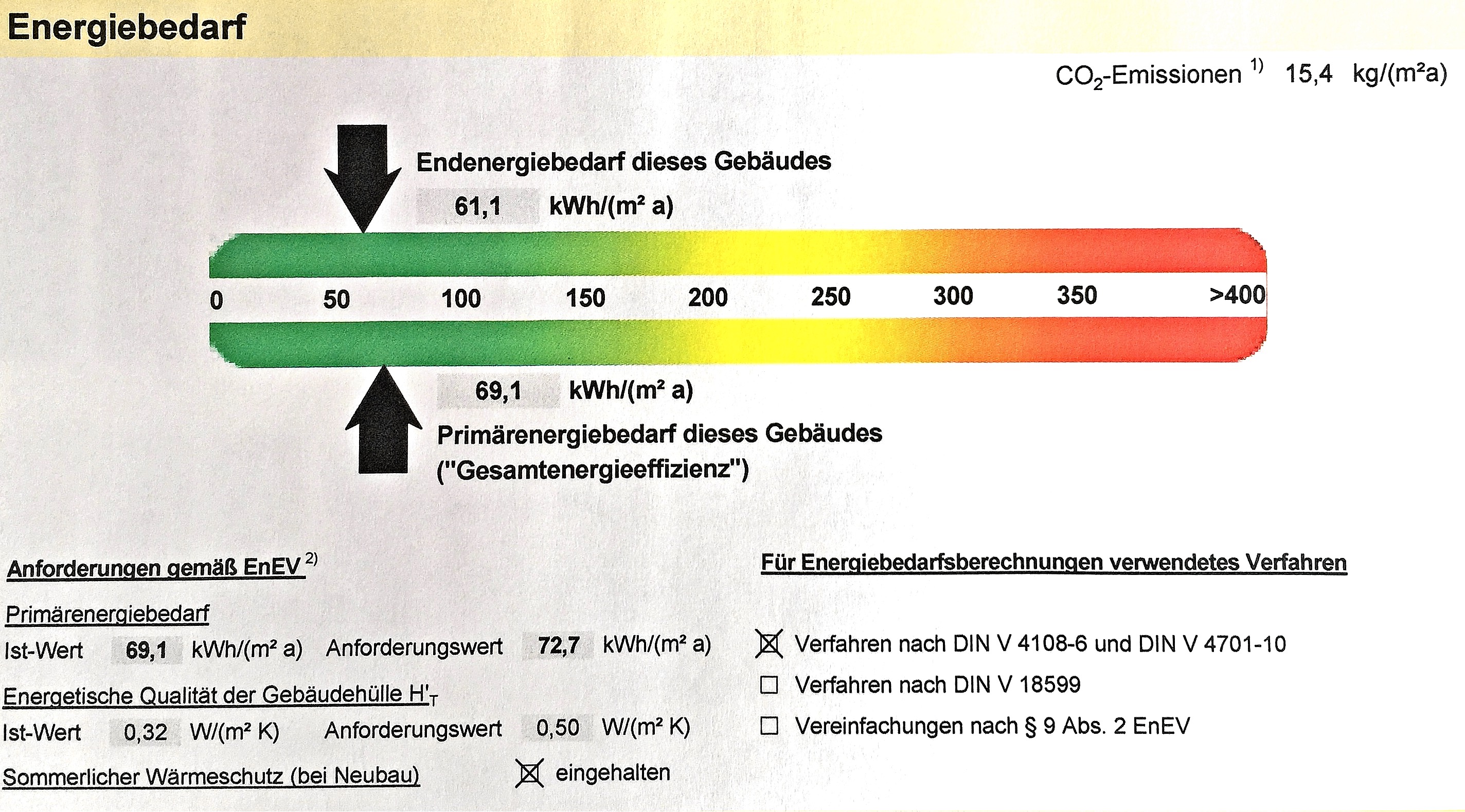 - Endenergiebedarf 61,1 kWh/(m²*a)
