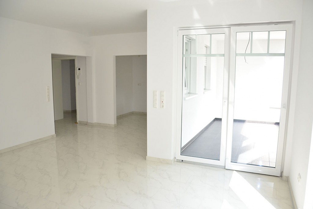 - Die gesamte Wohnung wurde mit einem einheitlichen Fliesenboden im modernen Rechteckformat 30x60 cm mit dazu passenden Fußleisten ausgestattet