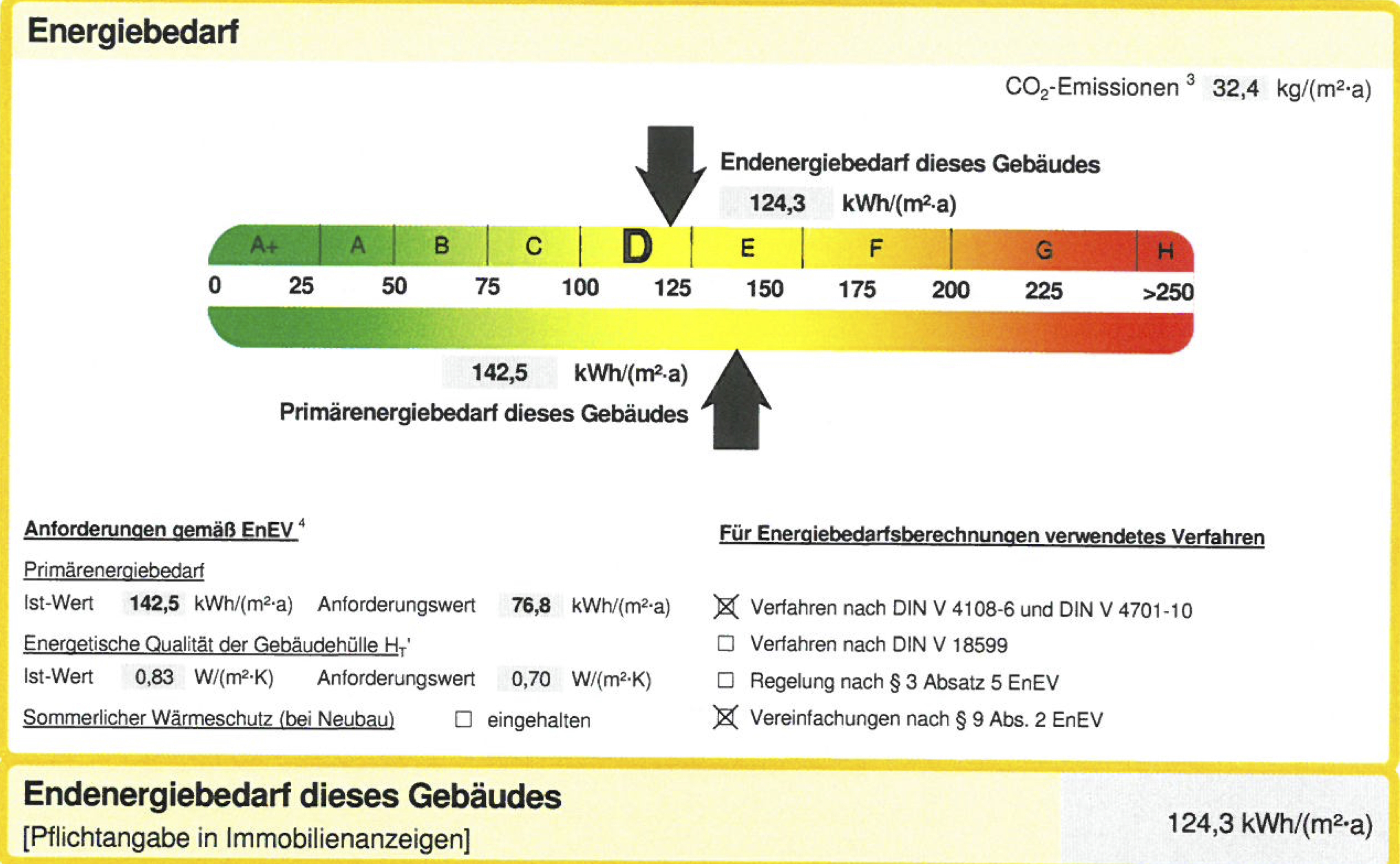 - Endenergiebedarf 124,3 kWh/(m²*a)