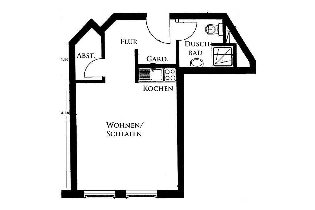 - Waschmaschinenanschluss im Küchenbereich vorhanden (alternativ steht ein gemeinschaftlicher Wasch- bzw. Trockenraum zur Nutzung zur Verfügung)