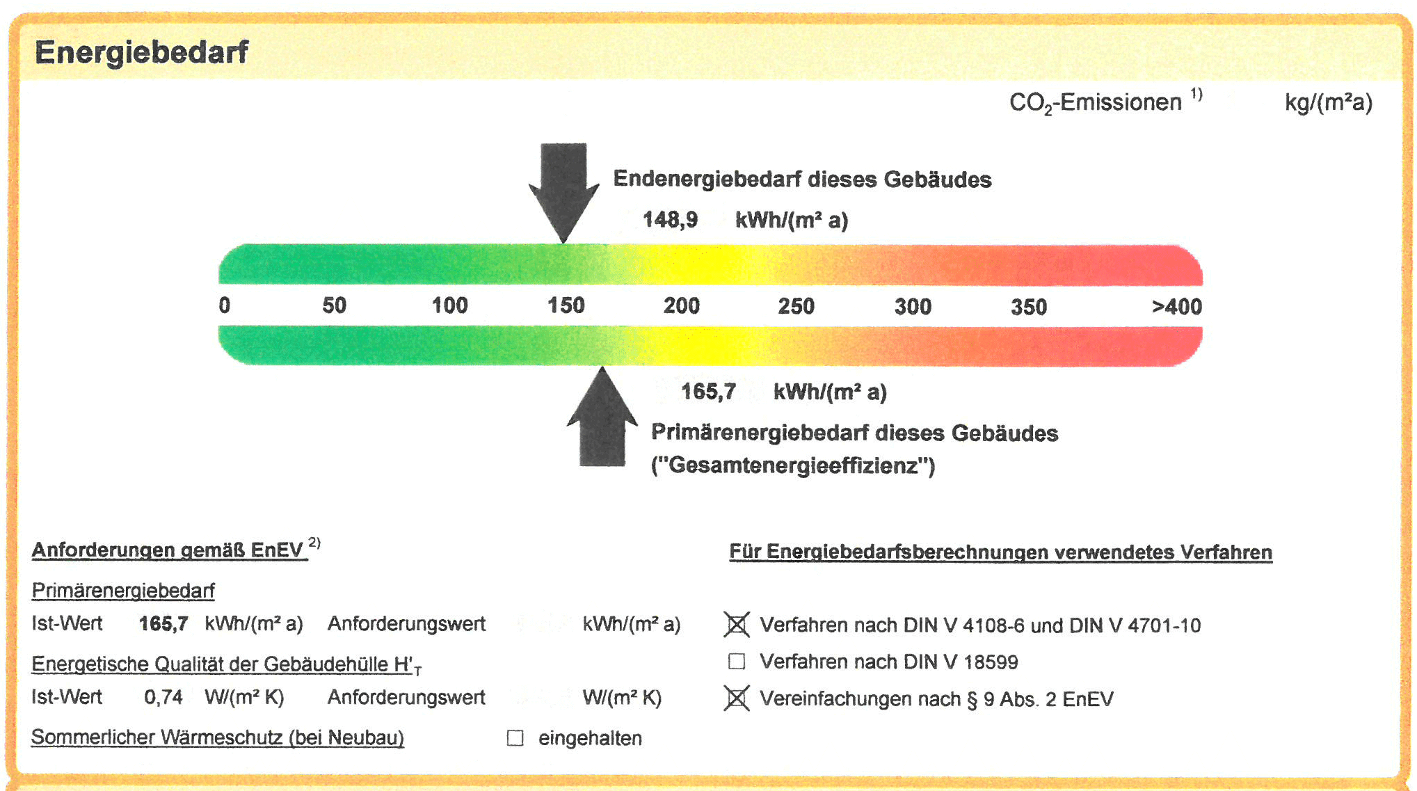 - Endenergiebedarf 148,9 kWh/(m²*a)